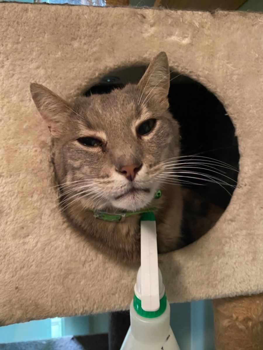 He loves being around other cats & doing his own thing. He will find a comfy spot & sleep the day away while you are at work & then be your shadow when you come home at night.