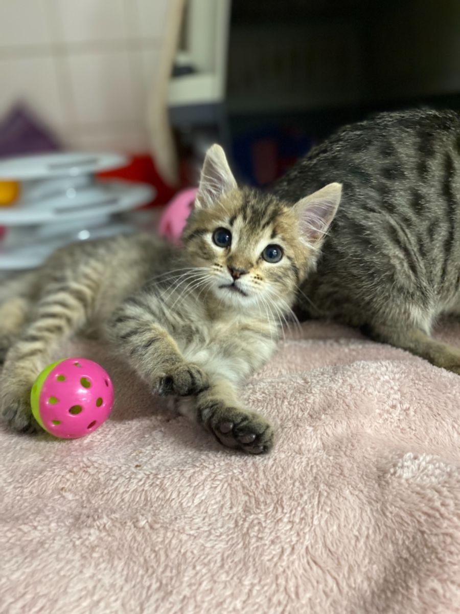 Flynn came to us as a stray kitten when he was just 1 week old! (see the last photo). He has been hand raised by one of our superstar nurses and is now big and healthy and ready to find his forever home. He is a super cheeky, playful and energetic kitten.