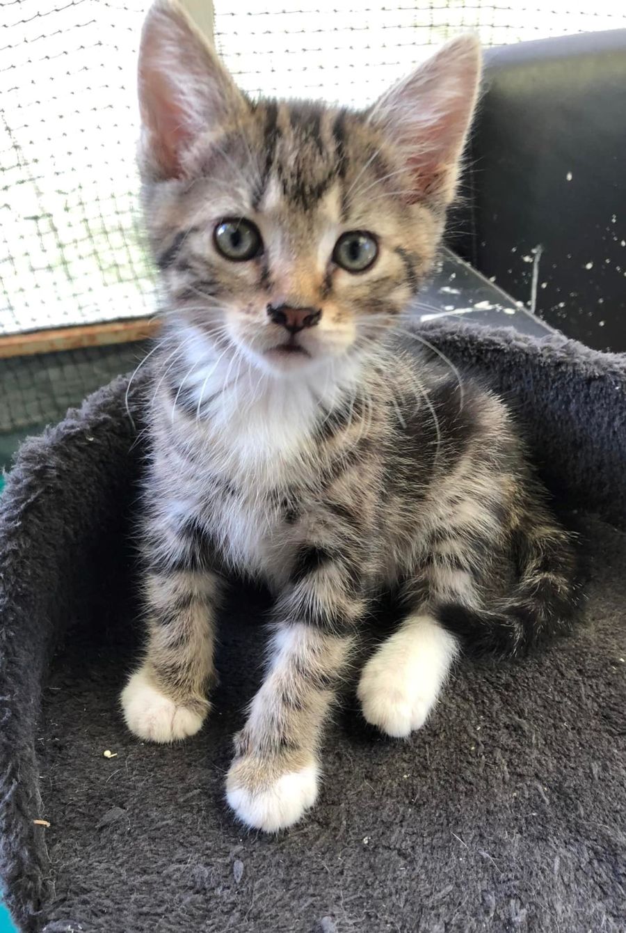 Bravo is a handsome 10-week-old tabby boy with a sweet and happy disposition. We believe he will grow into a big, beautiful boy who will bring a lot of joy to his forever home. Bravo loves his toys and is into all sorts of fun and games. After a big play, he loves to snuggle and is very affectionate.