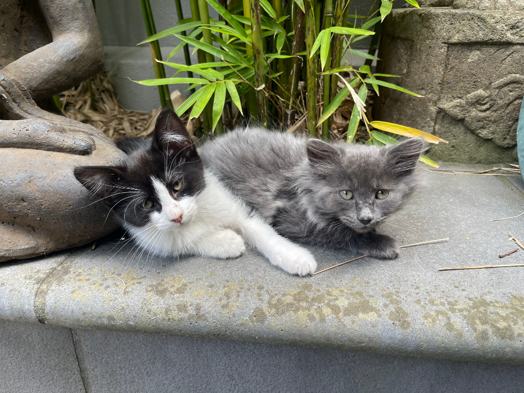 Yoda and George Gift are healthy kittens who have been wormed, flea treated, vaccinated, desexed and microchipped (Yoda microchip #991001004570282, George microchip #xxxxxxxx, source #RE101165). Yoda has been diagnosed with a grade 1-2 heart murmur which the vet says he will likely grow out of. George is disgustingly healthy. They are available for adoption right now!