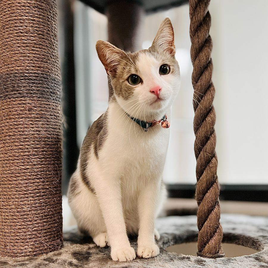 I do like to play-bite when I play, but I promise I’m not trying to hurt anyone. It would be best I went to a home where everyone is confident with reading cat body language, and can teach me to be gentler with my play-style when I get a bit excited. I’d love to have lots of toys to keep me entertained and a big cat scratcher too!