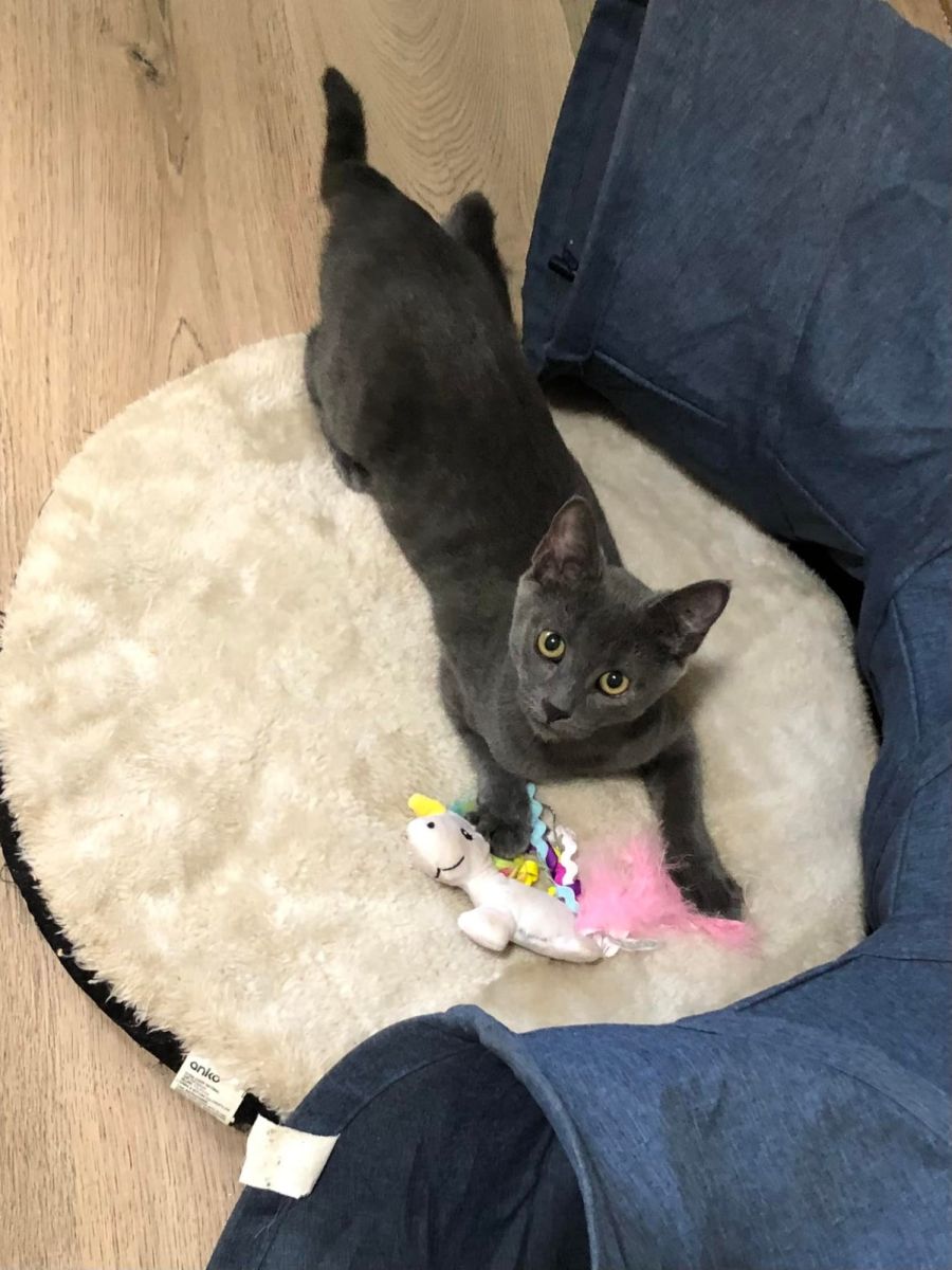 Snap is full of beans and loves to play with her toys. She can be slower to warm up than her siblings but if you take the time to build her trust then she can be affectionate and enjoy a nice pat. Snap absolutely loves her food and will make sure she gets what's hers so it's important to ensure she can have her meal in peace. Snap has interacted with her siblings and adult humans and with time gets on well however we aren't sure how she would go with any other animals so future adopters should be prepared for slow introductions to give them all the best chance to coexist! Human children would also need slow introductions, proper supervision and guidance on the correct ways to handle kittens so they can both be safe and happy.