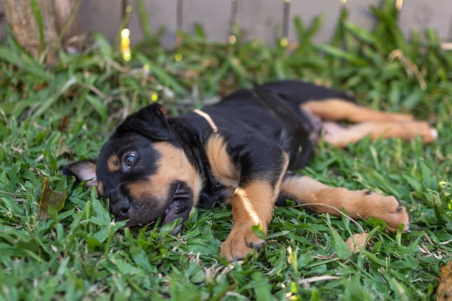 Eddie is one of the biggest in the litter π and yes your eyes aren't deceiving you, he really does look like a Rottie π Going along with our theory of there being some interesting breeds in this litter. This boy even acts like your typical rottie too :P He loves his food, he is cheeky and playful. Loves to rough house with his siblings and play tug with the humans. But he also loooves a big cuddle and smooch too π₯° He would prefer a furever home with another doggo, he just loves to play and rarely like to be on his own π
