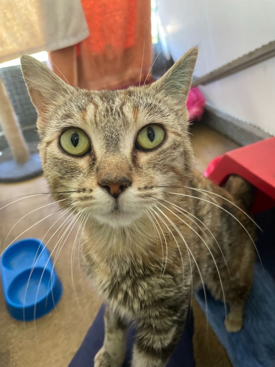 I am a well mannered young lady with a gentle soul and a soft meow. I will sit on your lap, look into your eyes and purr my way into your heart. Feed me