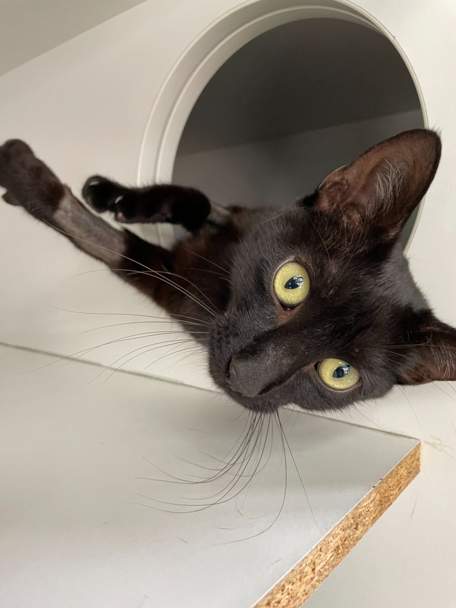 When I first came in, I was unsure but after a few days. I was coming out of my hidey and being a big smooch and rolling around for pats.