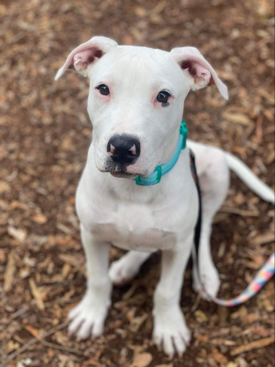 Rhane is our resident chunky boy! His beautiful white coat, dark brown eyes and wiggle bum make for a killer combo.