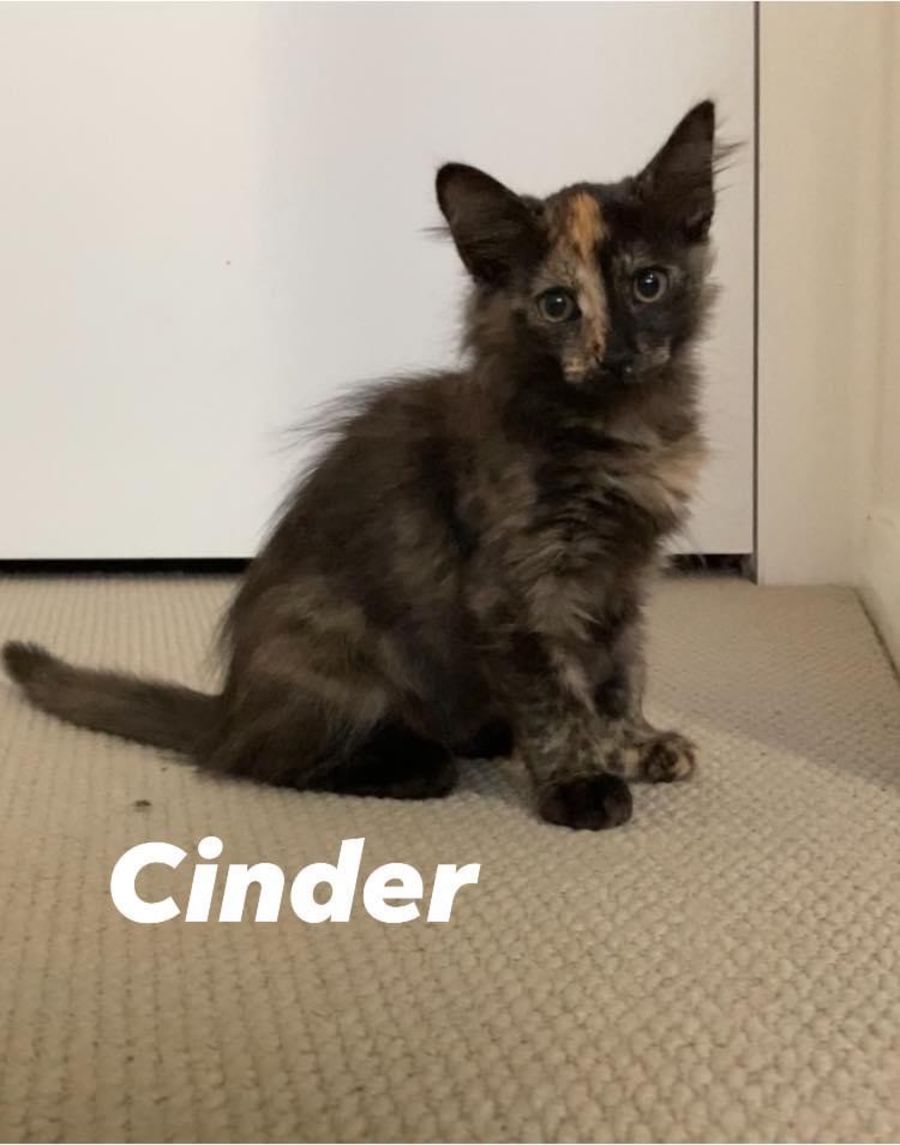 Cinder is a gorgeous little tortoise shell girl. She is a gentle friendly girl who loves to cuddle with Sunshine. Cinder is a sweet soul and is doing so well since being the smallest of the bubs when we first met them.