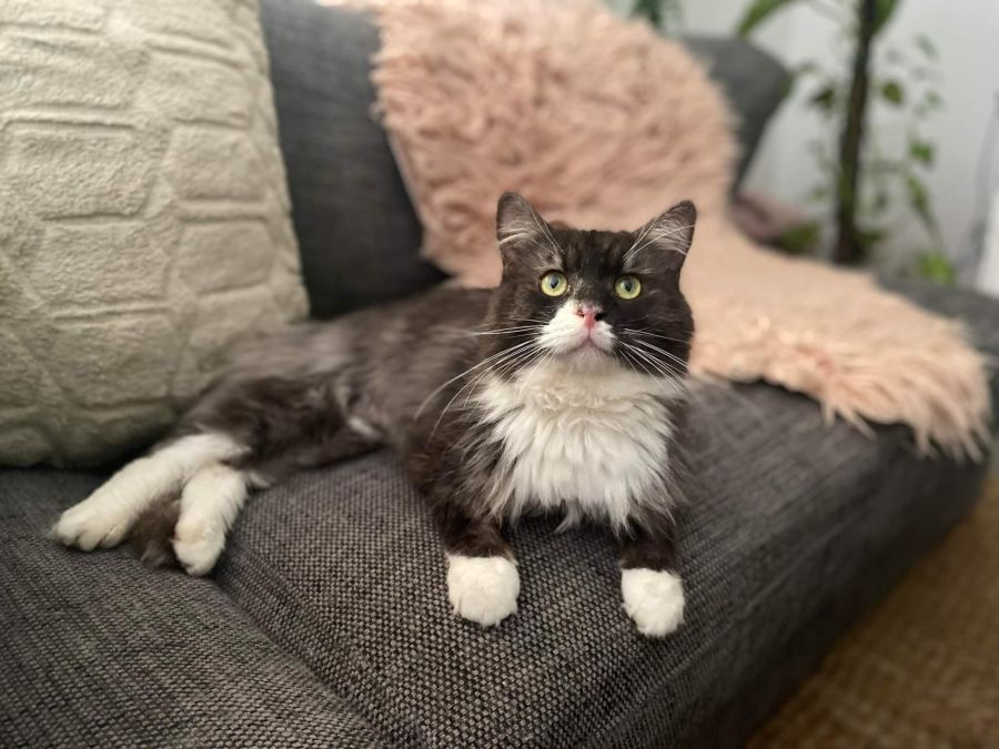 I like sitting in laps, love to sleep next to you and Iâm good with other cats. I also love eating, I like my belly full!