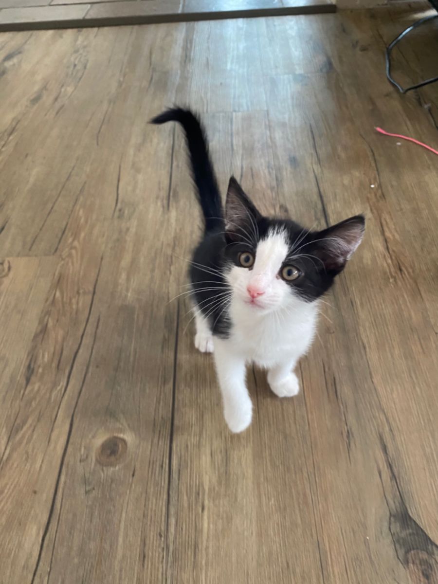 Such a cheerful fellow Jingles wants to be friends with everyone. He was found by a pest remover in a factory trapped by a paver. He came to us and immediately bonded with older kittens and the resident cats. A bit of a clown will see him running around with a ball or wand in his mouth. His large ears give him a comical look but he loves nothing better than snuggling on a lap getting pats to which you are rewarded with loud purrs. He hasn’t been dog tested but with his brave front I’m sure he will be bossing around the dog quickly.