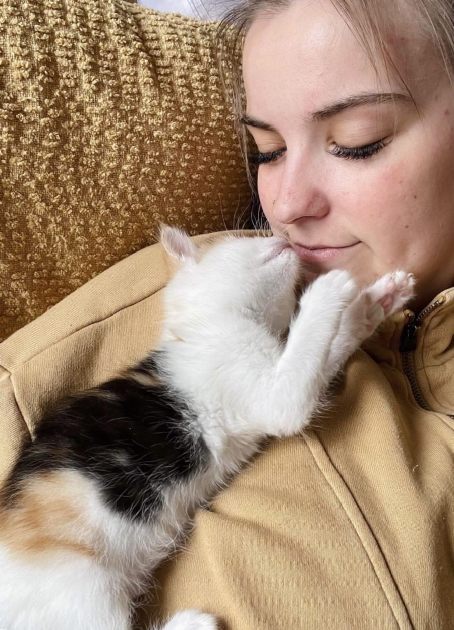 This beautiful calico kitten is the sweetest and most gentle one from her litter of three 🐱 Sparkles loves to cuddle up to you and will make sure every person around her gets their fair share of love and affection 💖 This little one loves to run and play, climbing up high and tumbling around with her kitten toys 🧸 But most of all, she loves to be next to you for cuddles and will emit the loudest purrs to warm your heart ❤️ Sparkles’ fur coat is beautiful and silky soft, just like her personality. So cute and sweet, she will gift off a soft little meow when asking for your attention. Hand-reared from young, she is very accustomed to her humans and would make a great kitty companion for anyone. Sparkles is the perfect kitten to help lift your spirits and just the thing to warm your heart 🥰 She would be suited to all family types in a stable home environment and must maintain an indoor-only lifestyle for her ongoing safety and well-being.