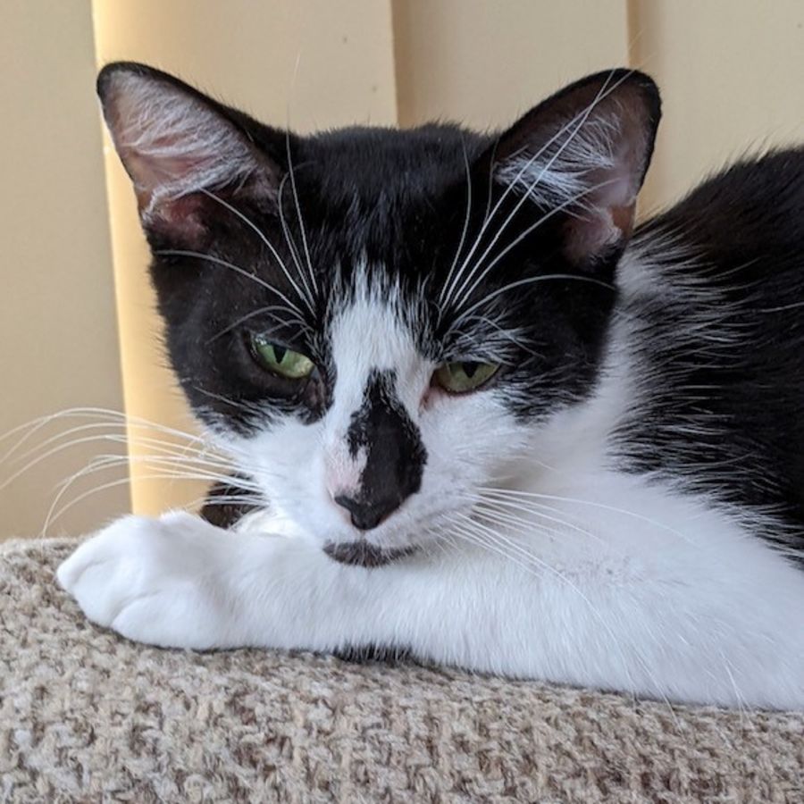 She’ll is a really lovely girl but needs the time to bond with her new human. She gets very nervous with change or new people or noises, so she’d be perfect for a single person or couple with a quiet lifestyle who would like a responsive but not demanding companion.