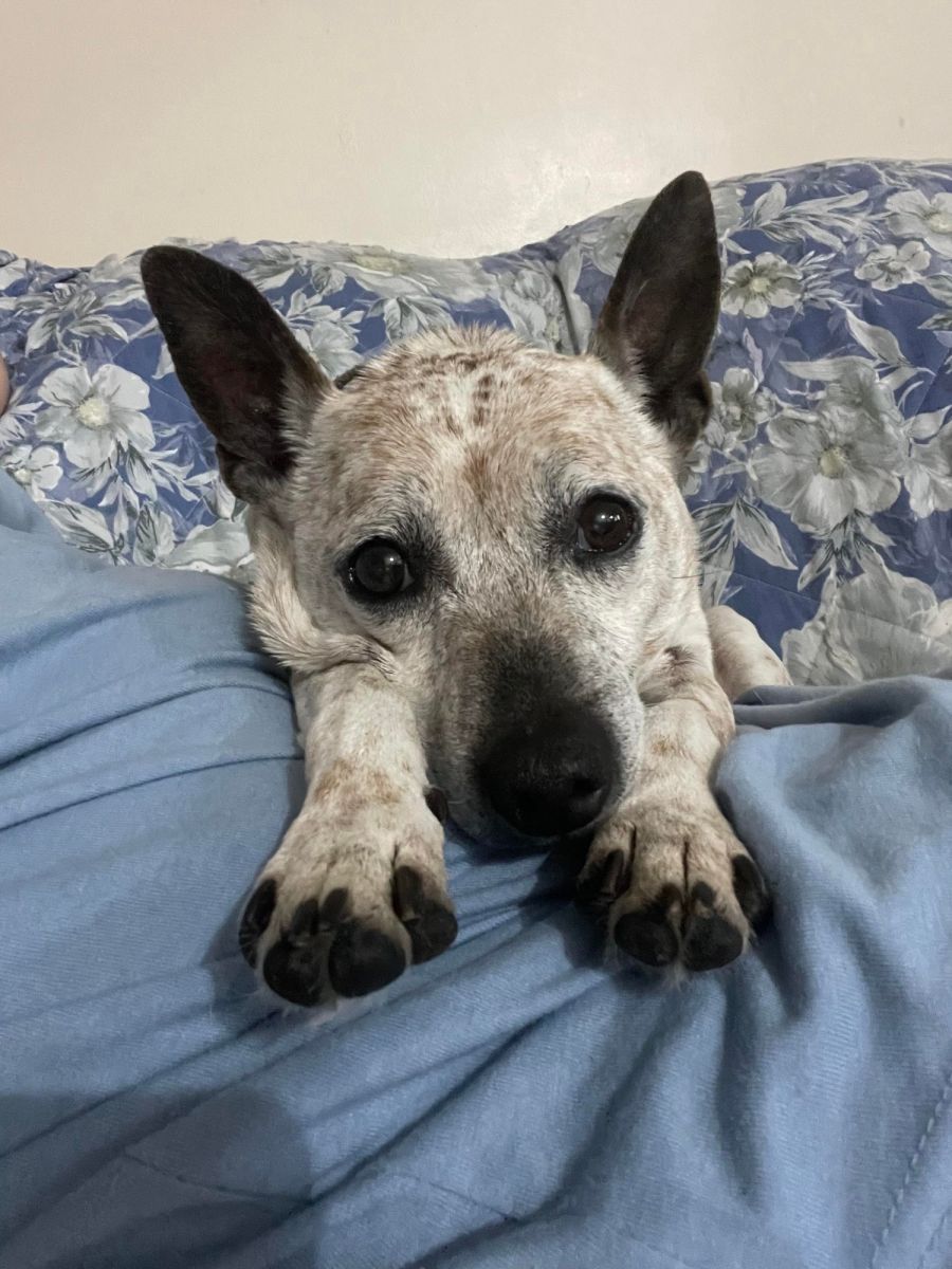 Ceo must be allowed to live inside with the family but she also loves to go out in the yard and lie in the sun (no matter how hot it is!) so a yard of some description would be ideal. She wants lots of cuddles and attention but she shouldn’t be doing too much jumping up and down off high furniture. Currently, she sleeps on her own bed in her foster carer’s room at night and slotted into the routine of her foster home very quickly. Ceo does not need a lot of exercise and should not be given too much; however, she thoroughly enjoys going for her walks. Ideally, she would like a 15 minute slow walk around the block each day. She can be a bit nervous in loud or busy environments so we are really looking for someone in a quieter suburban area. Ceo is fantastic off-lead and will not leave you but dog parks are too overwhelming for her as she is timid with unknown dogs approaching her.