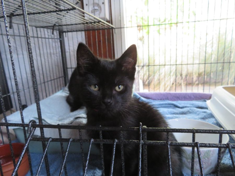 Vance was a little farm kitten who hadn't met people before coming into foster care. He has grasped his new life with both paws and is a real smoocher. Because of his recent past he can sometimes still get a fright but comes back for more affection very quickly. As he is rarely still photographing him is a challenge but he is a gorgeous little black panther.