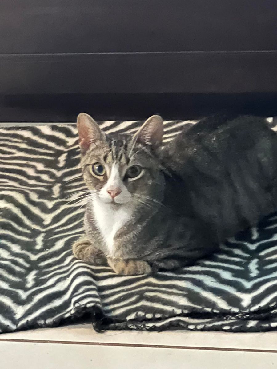 This gorgeous girl was attacked by a dog. Emergency Vets contacted us and she was given all the medical help she needed from our vets. She is now fit and well and looking for her forever home. She loves company, is still playful and is learning that all dogs don't attack. She would be best suited to an inside only home and preferably the only cat.