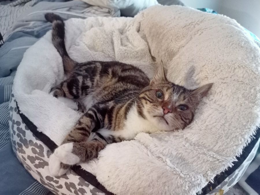 Has previously had treatment for entropion and severe cat flu on surrender. Proper care and a healthy diet and lifestyle mean that there should be no issue of recurrence, especially if any illness is treated promptly. Entropion is caused by extremely severe flu and eye infections that are not treated in the early stages and are left to become serious and potentially life-threatening.