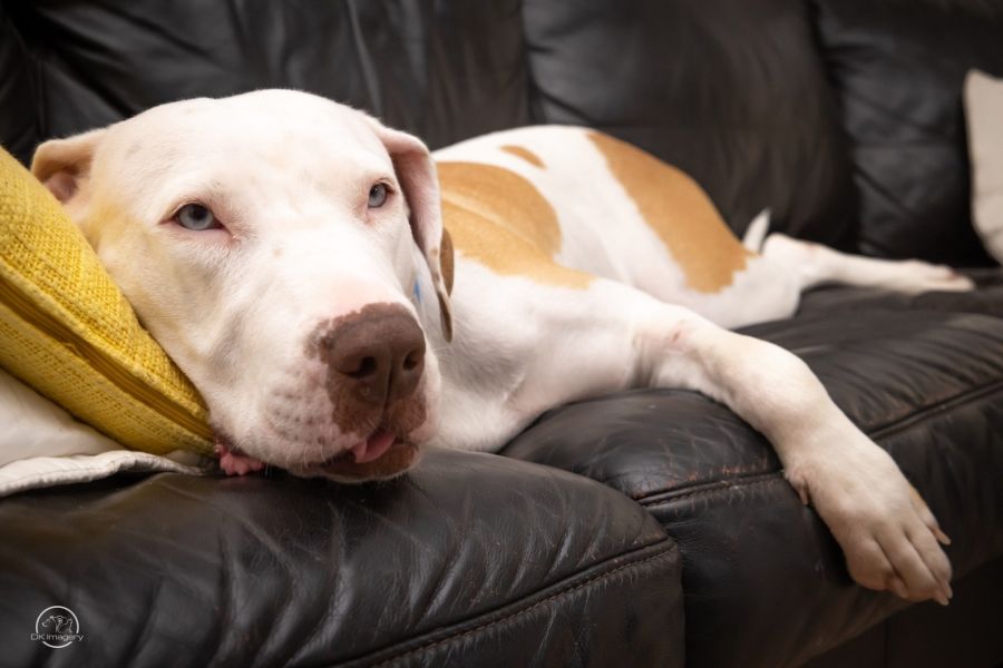 I’m Storm and my favourite thing is being with my human. I’m a big girl but I am a big softy at heart. I have lived with a cat, and we cohabitate in the house but I’m curious about what purpose it serves. I love children but I can play a bit rough so older kids would be my preference. But I do what I’m told when I get too playful.
