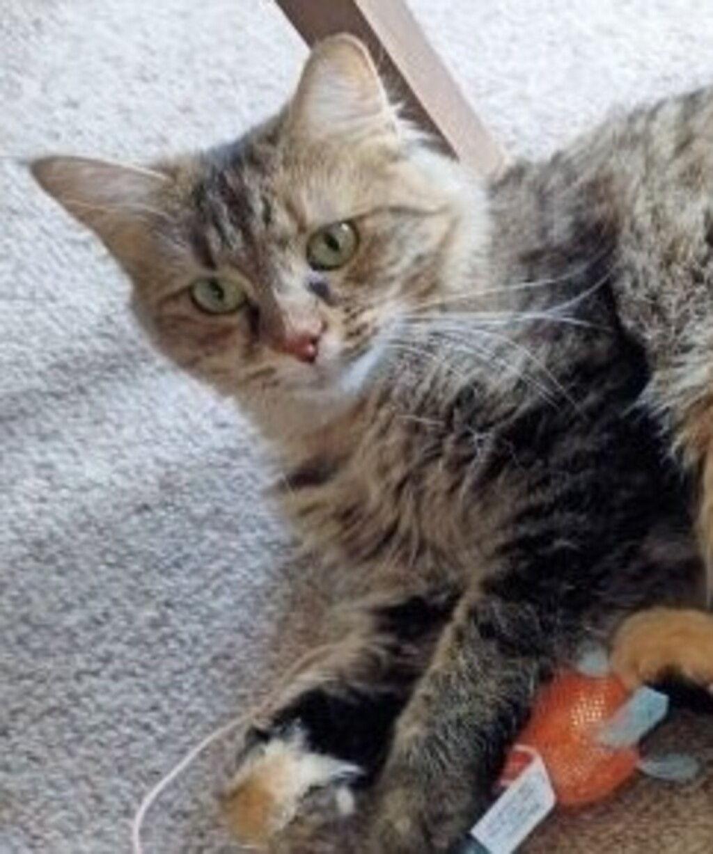 Cherry has thrived in foster care and loves the safety of living indoors as part of the family. She is a playful, curious cat who enjoys the company of both adults and children.