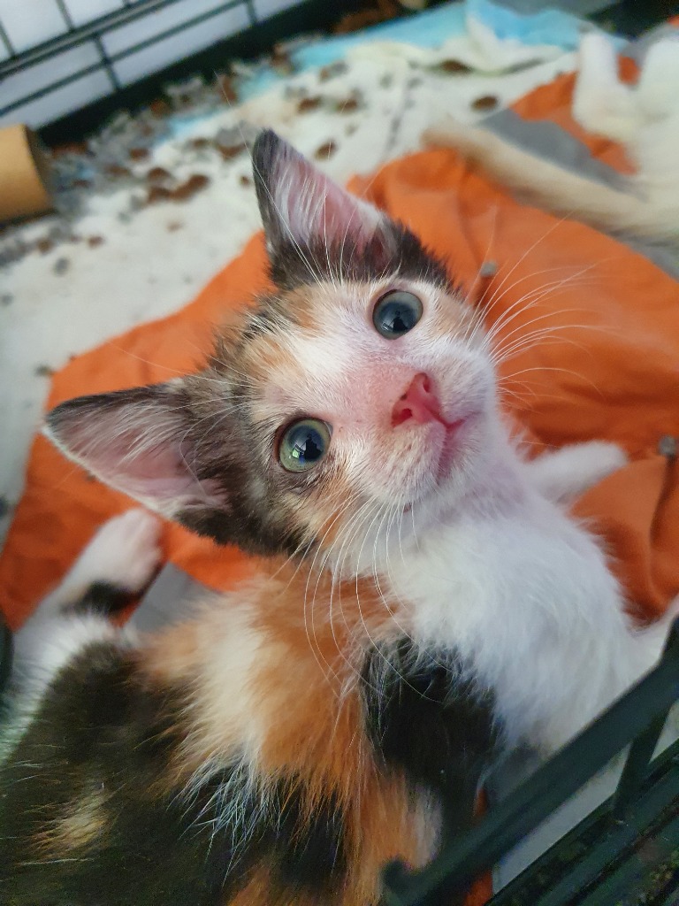 Karen is the fastest learner in the litter, first to take to the bottle, first to start sucking food off her carer's fingers, first to start playing with new toys and the first to have a nibble at some dry food! She's an independent young lady and would love a human of her own to boss around. She loves a good cuddle and will wrap her arms around your neck when you pick her up. She has a purr so loud you'll hear it from the next room. She likes to talk to you when she's hungry or wants to play and not much worries her.