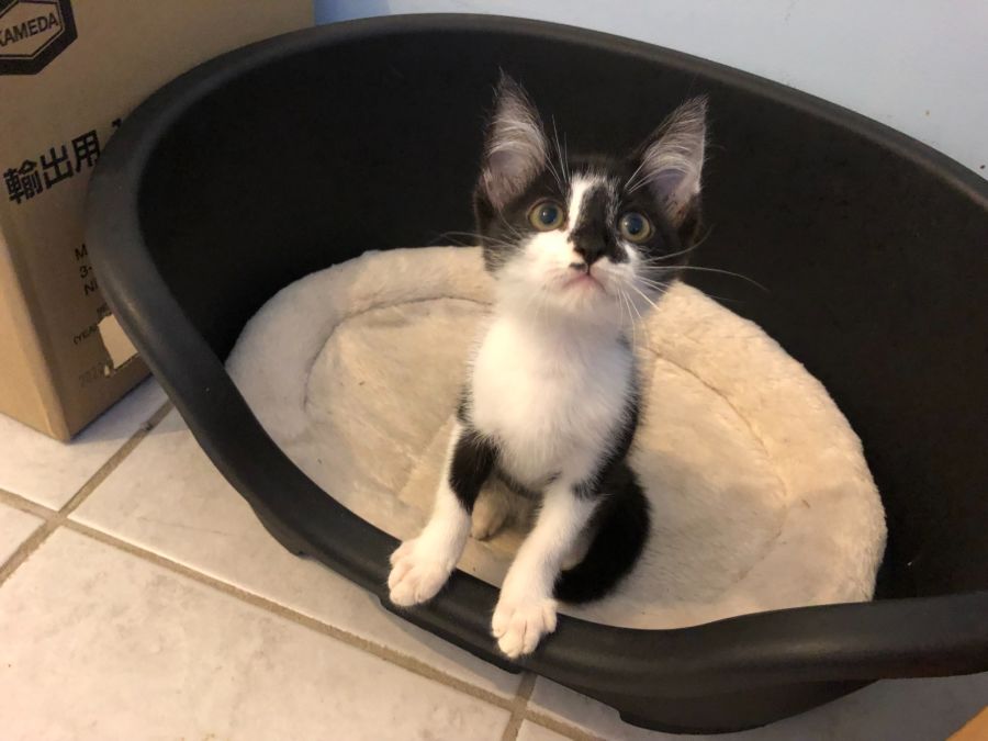 “Tobiko” is an outgoing, curious kitten who loves to play. He is a cute black and white kitten, with a white tip at the end of his tail. He loves playing with cat toys, exploring and climbing. He's friendly and affectionate and he has a cute habit of sitting on shoulders for smooches with humans. He loves the company of his 4 siblings and a resident adult cat. “Tobiko” and his siblings are very good natured and lots of fun. He is currently in foster care in Carina.