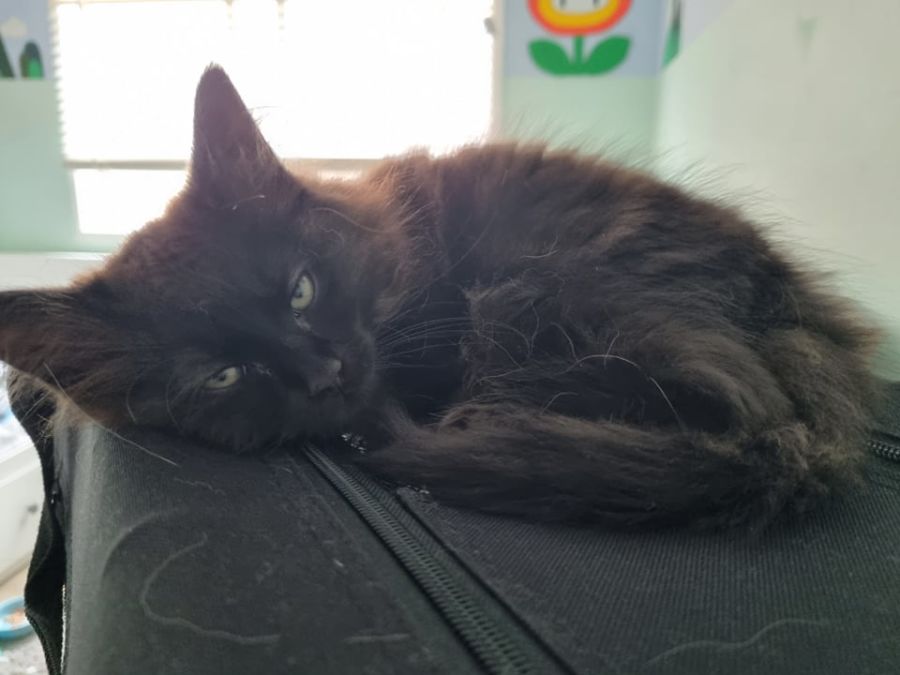 Orbit is playful and funny! He has such a funny character and manages to make you smile with everything he does. He's always up for some crazy belly rubs. He loves attacking moving toes and feet, he will climb up your pants to get your attention and will be in heaven with lots of toys around to play with. Orbit has beautiful soft black fur with a bit of a wavy curl around his chest.