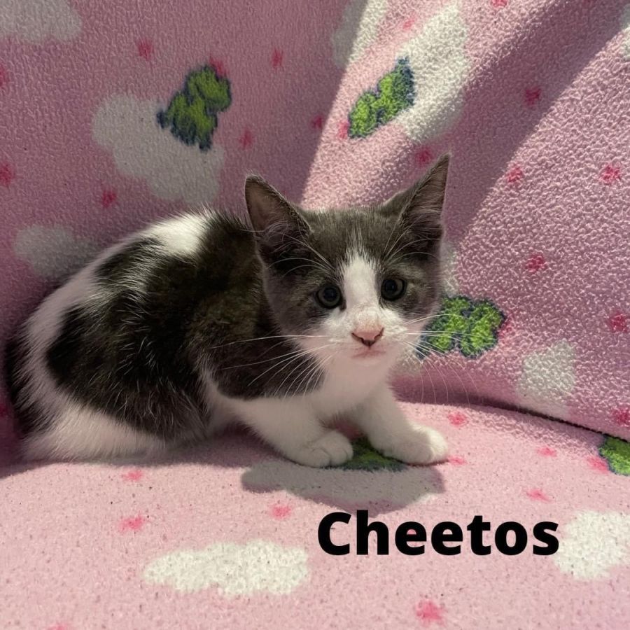 Cheetos has a sweet and gentle nature. She is good with people and other cats.