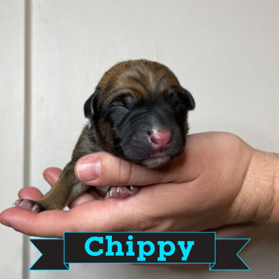 Chippy and her siblings aren’t your average rescue pups. They have been through some pretty intense socialisation from the moment they were born. They have gone through ENS (early neurological stimulation) in their first two weeks of life and have been exposed to many different forms of stimulation including auditory, tactile, visual, taste and vibration. They are currently working on walking on a harness and leash and being gradually exposed to the outside world. They have all received one on one time with humans and separation from the litter. They have had some training on consensual handling and have had their nails trimmed twice weekly since they were 2 weeks of age.