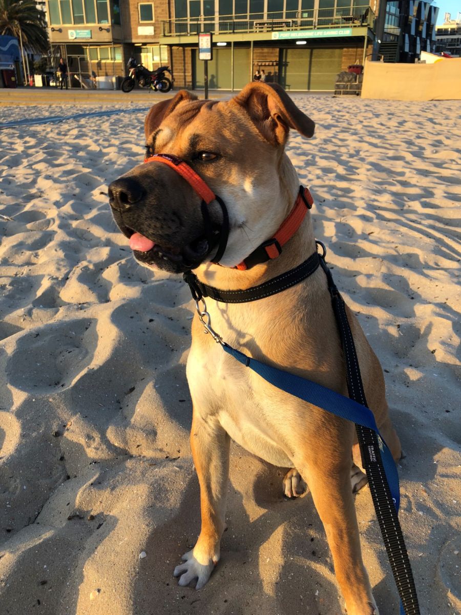 She has proven to be a bit of a city girl. Very experienced with riding in a lift and does not bat an eyelid at a tram. The ultimate for Vala is walking along the waterβs edge at the beach and taking in the smells. Walking with a halti is easy.