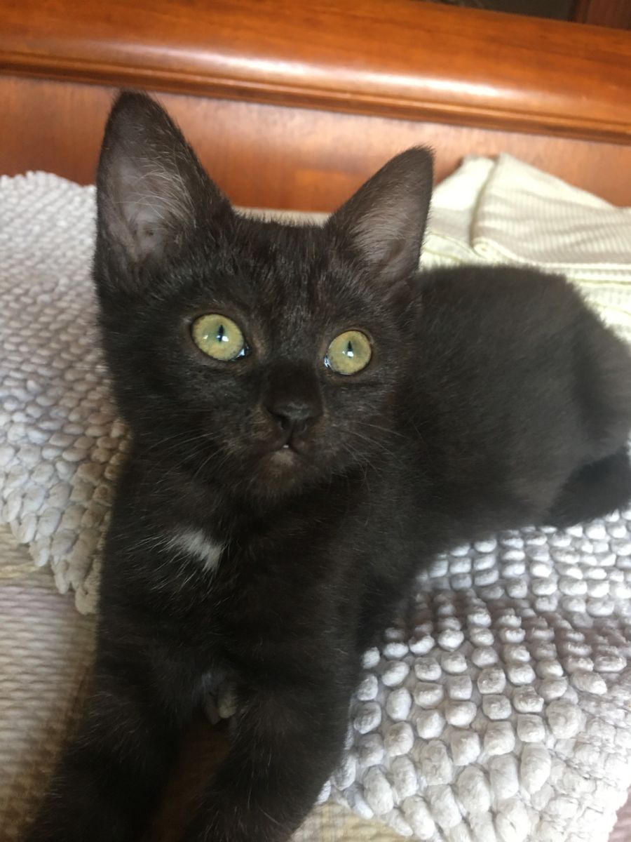 Brie is a gorgeous black girl with a white spot on her chest and armpit! Brie is a pet that will meet you at the door and run over to you when you enter a room. She will meow at you softly and purr like an engine! Brie loves cuddles and affection and will roll onto her back for tummy rubs and scratches! Brie would love the company of another cat in her forever home and has so much love ready to give!