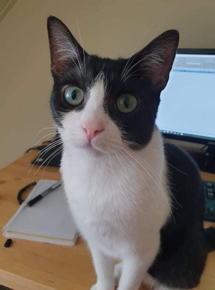 Fergus is cheeky, confident, always up to mischief, and loves attention. He likes to be on your desk if you're working and he loves to sit or climb on you then start purring loudly. He will also bite you gently to tell you how happy and in love with you he is 😁