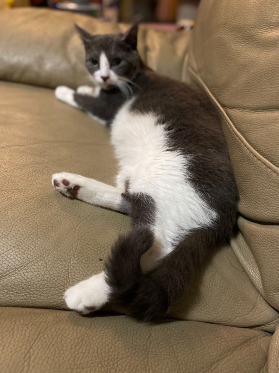 She is still a kitten & loves playing, chasing balls & finding the coolest spot on the couch on a hot day.