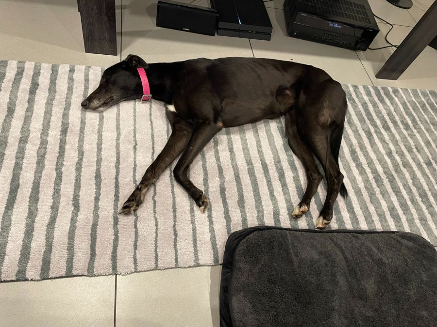 Lucy is a loving little girl she is not into racing and would prefer to be with someone day and night taking quiet strolls along the beach or through the park. She is happy to sit a look at everything while you have your coffee attracting as much attention by being so well behaved.