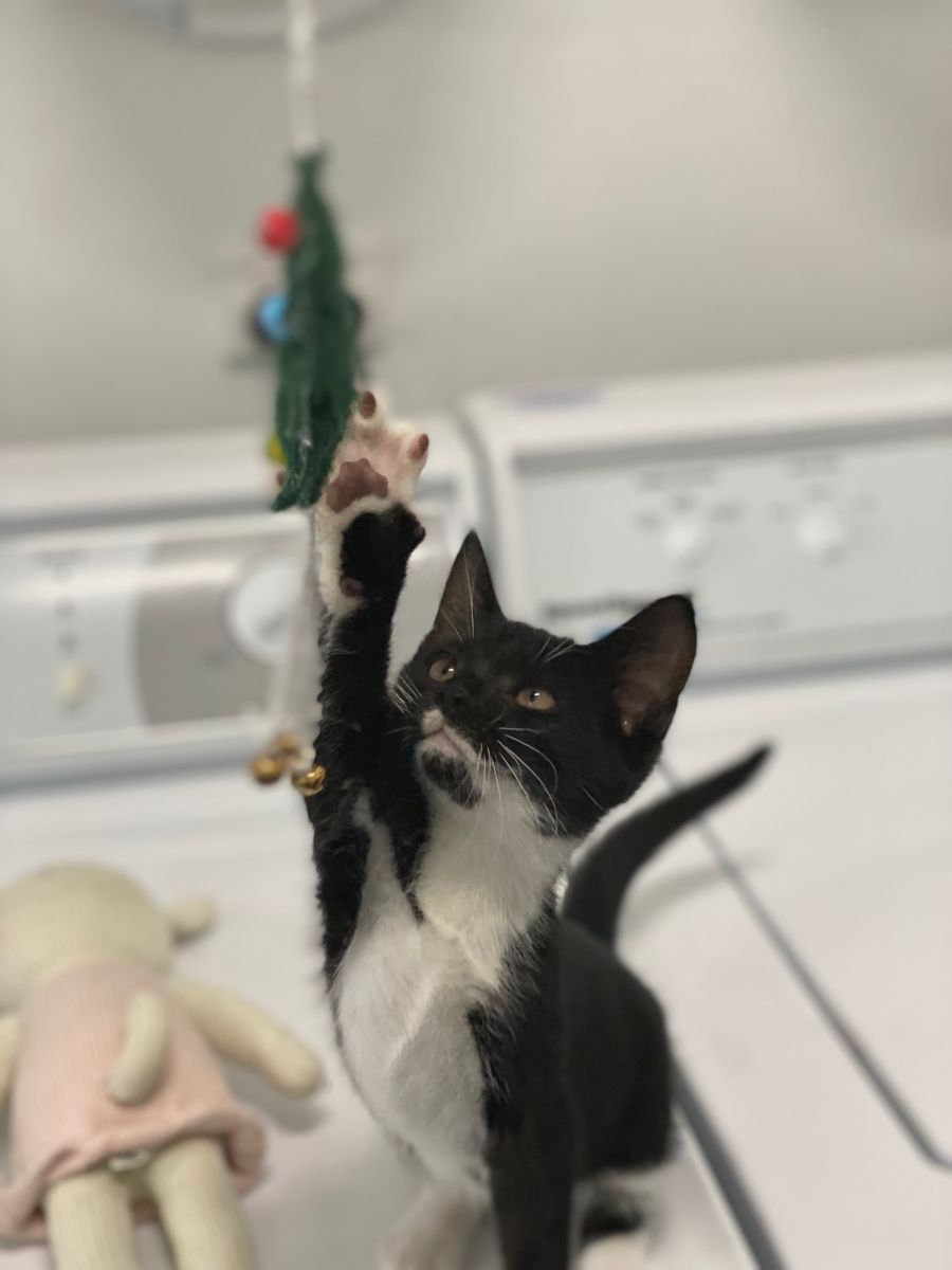 Ollie is a typical kitten, full of playfulness and curiosity. He loves to play with other cats and can be quite energetic but loves to purr when given a chance.