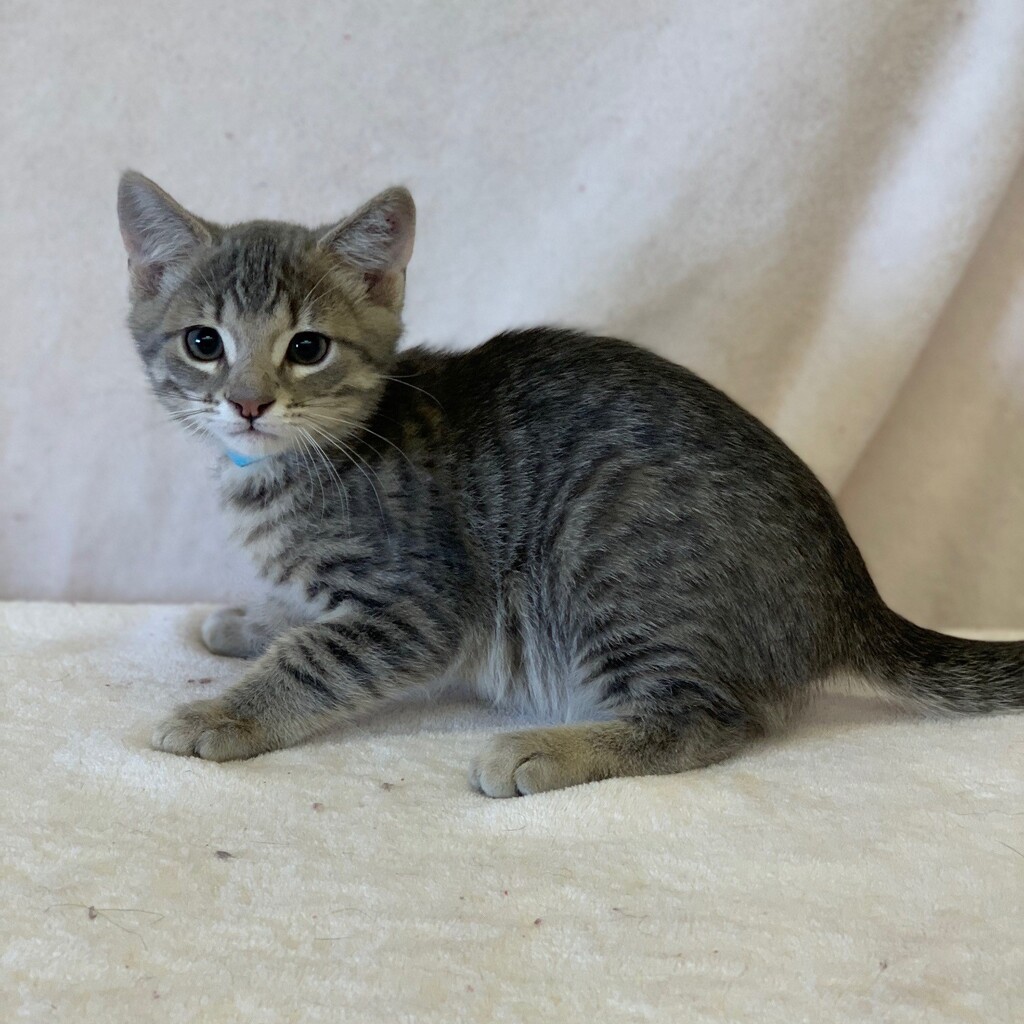 Archie was born at the animal shelter and spent the first part of life's journey in foster care where he got to hang out with a couple of old folks and their feline family. Archie is your typical kitten, loves to play, eat and sleep. He, along with his siblings especially enjoy climbing, usually into the ironing basket, playing hide and seek and just generally getting up to mischief. Archie will make a wonderful addition to any family.