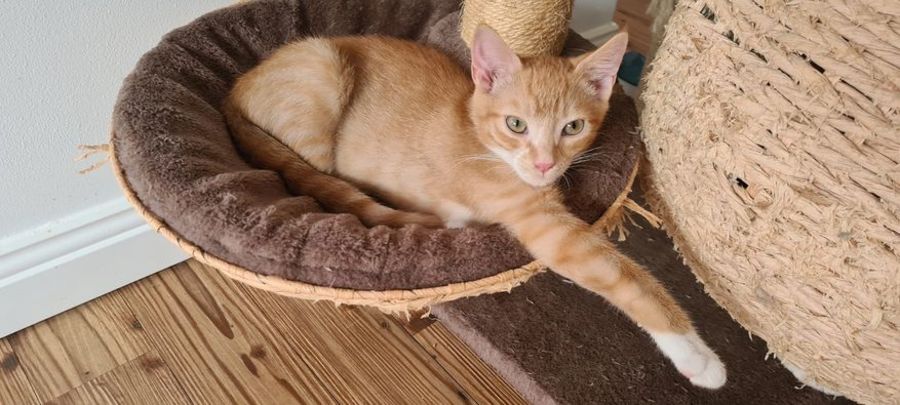 When he's had enough playtime though, he's happy to curl up in your lap, sit next to you on the arm of the chair or snooze away on the cat tree.