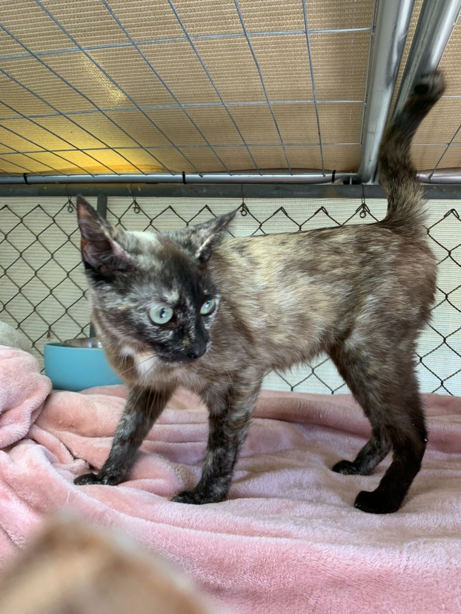 lot of energy loves playing with her kiddoes comes up for pats and cuddles walks around meowing rubs up your leg lays and waits for her food