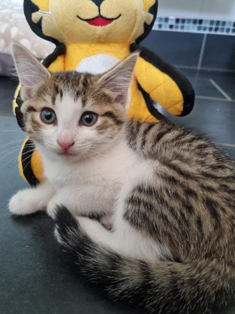 Toothpaste loves to be the centre of attention always in the thick of it. She has bundles of energy and enjoys playing with all sorts of toys as well as any animal that walks. She will crash and happily nap near you but isn't an extremely cuddly cat but she can certainly have a big personality. She would be perfect for an energetic family of school aged children with other animals or a couple.