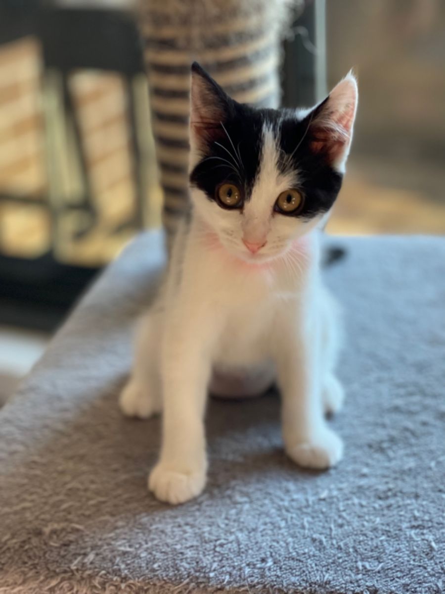 Meet little sweet souffle..she is the sweetest soul you have met. White bright with black spots she is the cuddly little girl who loves to play. She loves to zoom around chasing a cat ball or any toy that she can find and even more enjoys playing with her human’s and having cuddles. Soufflé has been in foster care with other kittens, adult cats, big and small dogs and little kids. She loves all and enjoys running up and down the hallway with her little puppy companion at her foster carers.