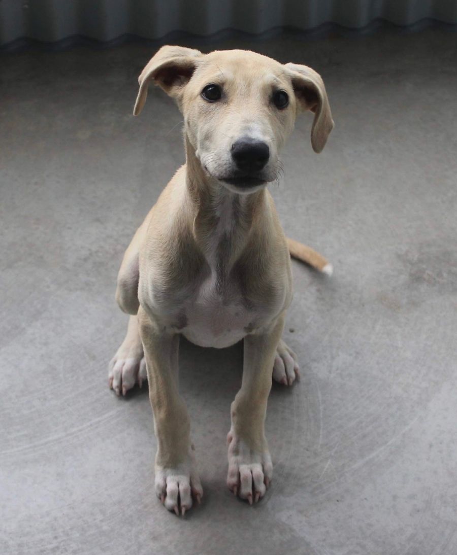 How can you help but fall in love with this beauty? Lucy came in as an unmicrochipped stray who wasnt claimed. We have estimated her to be a Whippet x approx 10 Weeks old. Lucy is quite a tall girl so we think she's going to be quite big considering her age she is up to most of ours knees already.