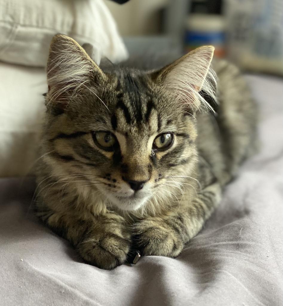 Oreo FlufferNutter is a big gorgeous super fluffy friendly confident boy. Too darn confident sometimes, he will throw himself into whatever he is doing with utter abandon and total enthusiasm. Oreo loves to wrestle with his foster siblings, especially his bestie Hijinx (the fluffy MMA tussles are a sight to behold). He's a big handsome striped brown tabby with super floofy fur. He's got a lot of the characteristics of a Maine Coon, including but not limited to fluff between the paws, trilling, ridiculously floofy, tabby striped. Whether he is or not, we don't know but he is utterly magnificent.
