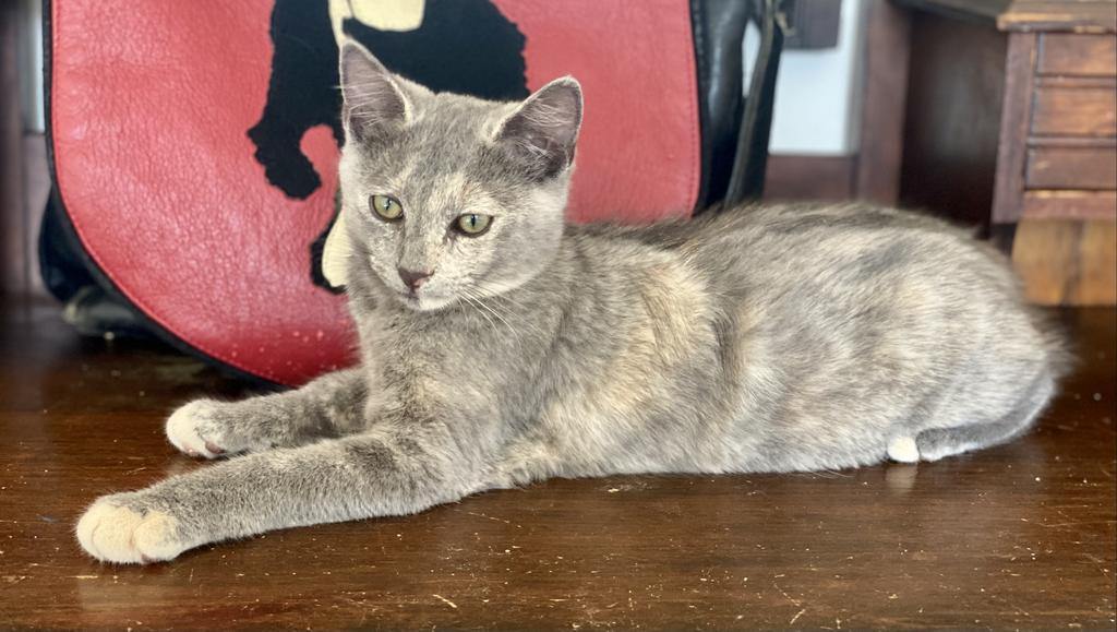 Not only is she stunning looking with her delicate blue tortoiseshell markings, but she has two speed stripes down her back and literally the softest fur ever. So soft in fact, that it's been known to make stressed children quiet while they stroke her. Tested recently with kids, Kellsie was declared their favourite for being friendly, tolerant and allowing strokes and pats and lap cuddles.