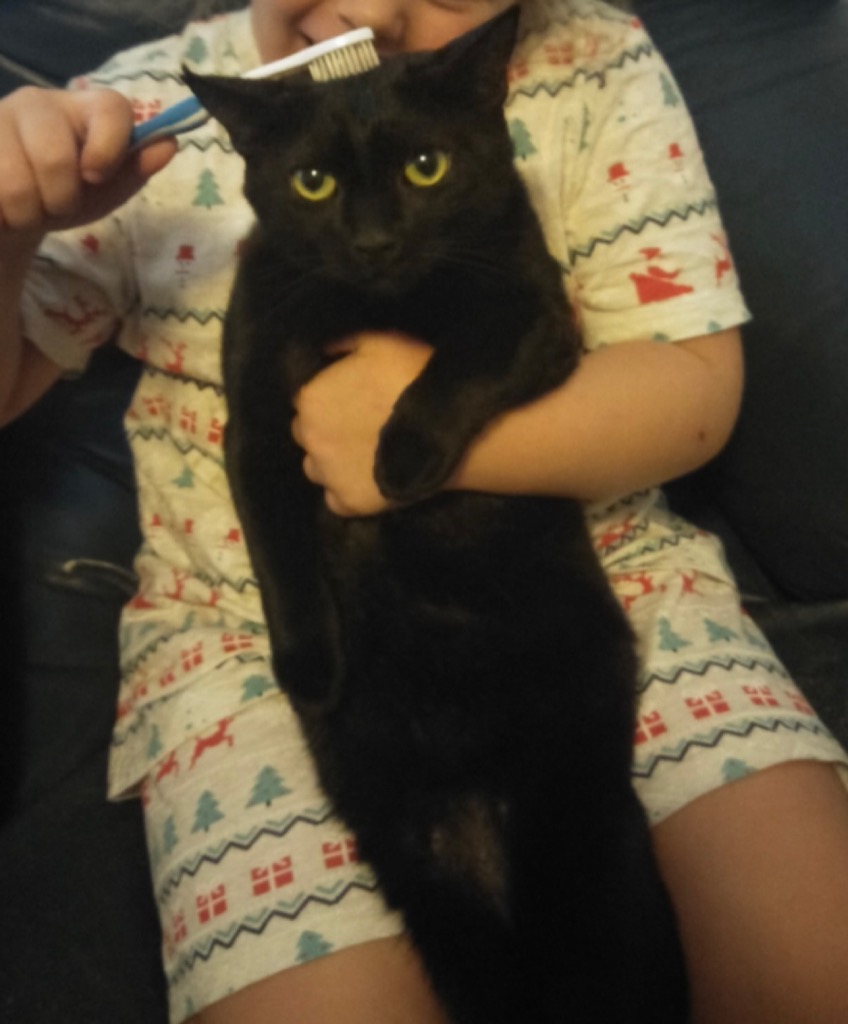 Snickers is as sweet as pie, little shy to start but loves to cuddled like a baby, not tested around other animals but loves kids, and is toilet trained. Snickers is sterilised and will b vaccinated