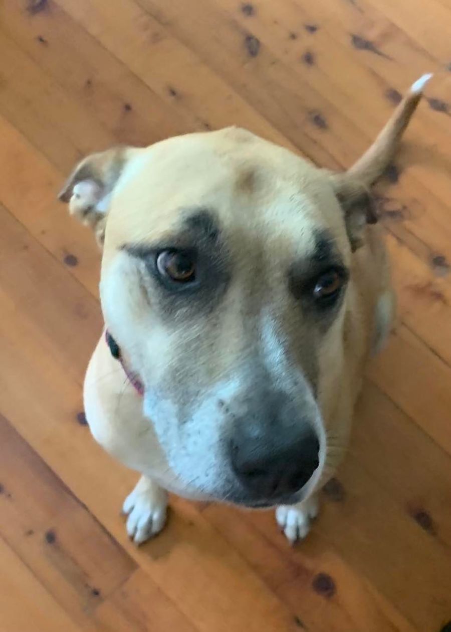 Brandy is very dog friendly and just wants to play and be a big goof ball.