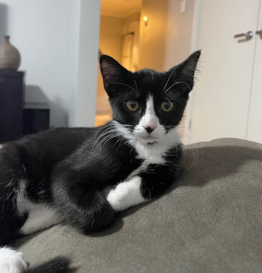 Salt is an affectionate playful kitten that loves cuddling her sister and her humans. She’s definetly a lap cat that will get in front of her humans phone if you’re not paying her enough attention. Salt would be happy to hang with other pets. She’ll also be sure to do as many cat acrobatic tricks to keep her family entertained.
