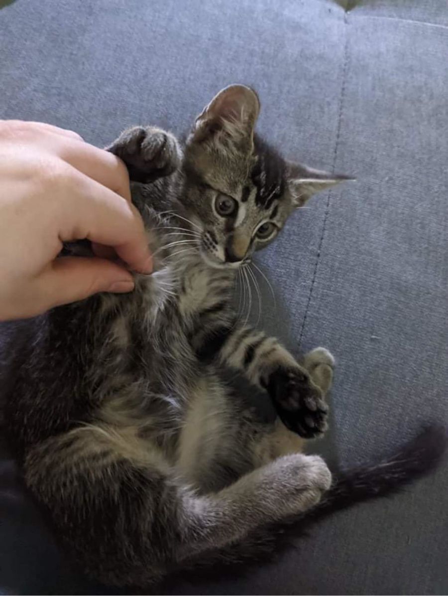 Momo is a cute and goofy boy that loves to play and explore. Happy to be cuddled and purr like an engine, he has lovely ticked fur like an abyssinian cat