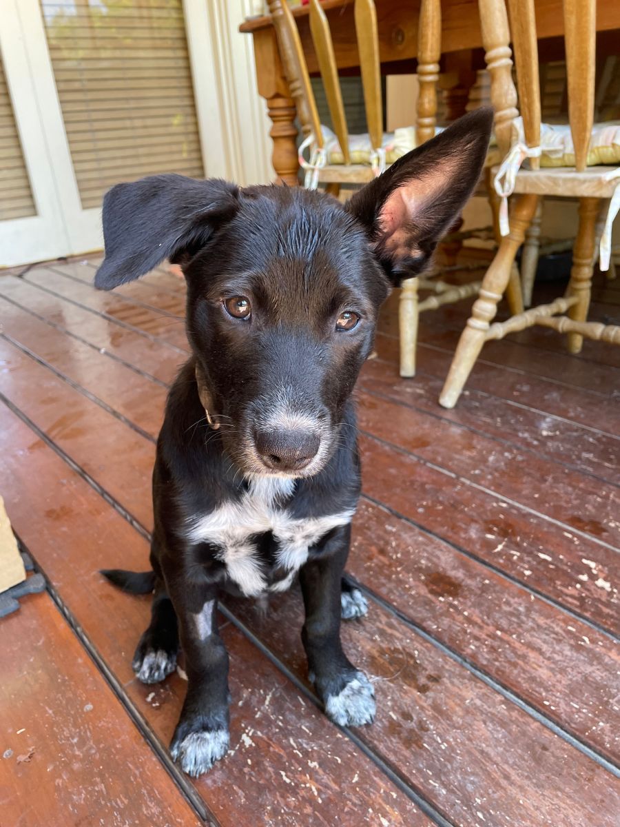 I am a 3-month-old kelpie x heeler puppy, so I am very active and have a lot of energy to use up! I love playing with my sister Nancy all day, as well as chewing my toys and attempting to lick my foster brothers face. I am very affectionate and just love people and other dogs so much! I love to get tummy scratches and give kisses to my foster humans and then I spend most of the day in the backyard exploring, playing, wrestling, eating, and napping.