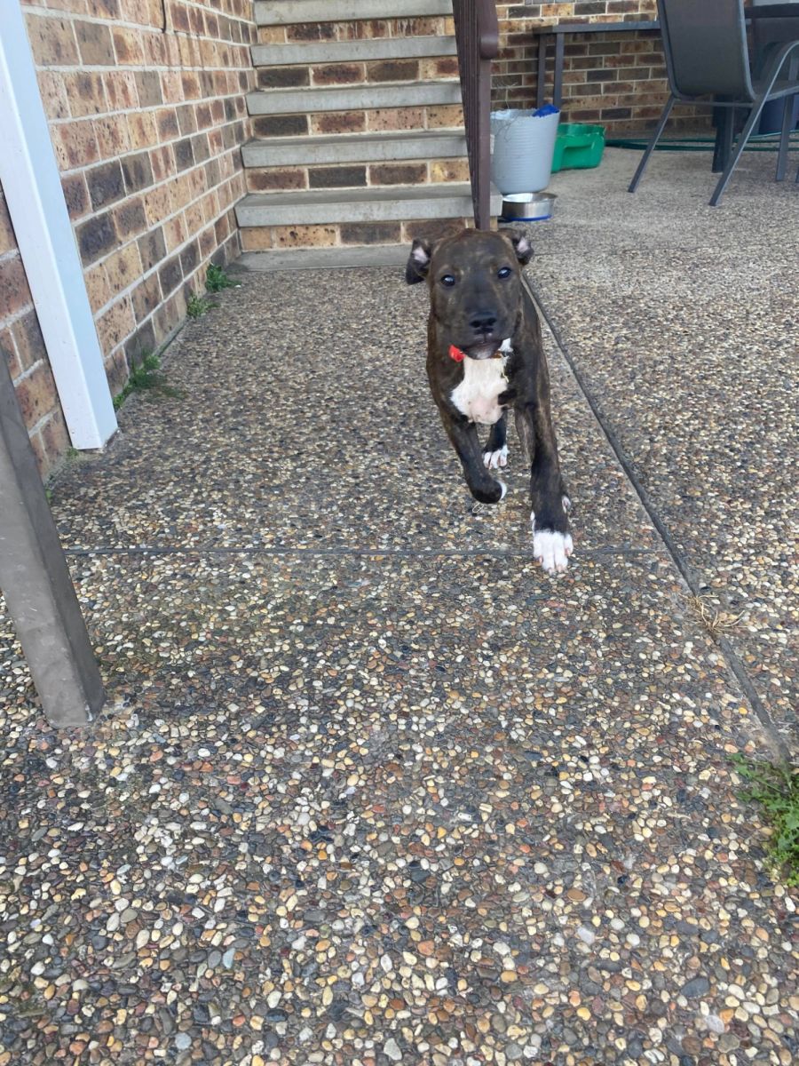 I'm a staffy x bull arab puppy looking for my furever home! I'm currently in care with my brother, Levi, who is also up for adoption. My foster parents have two resident doggos who I love and a resident kitty who I don't care much about.