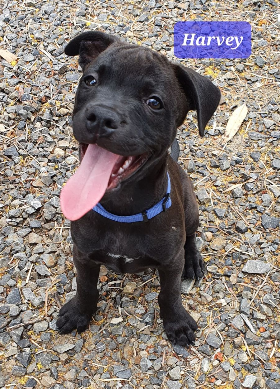 Harvey is a Male Black Staffordshire Bull Terrier - American x English. DOB 7 November 2021 and currently weighs 5.9 kilograms.