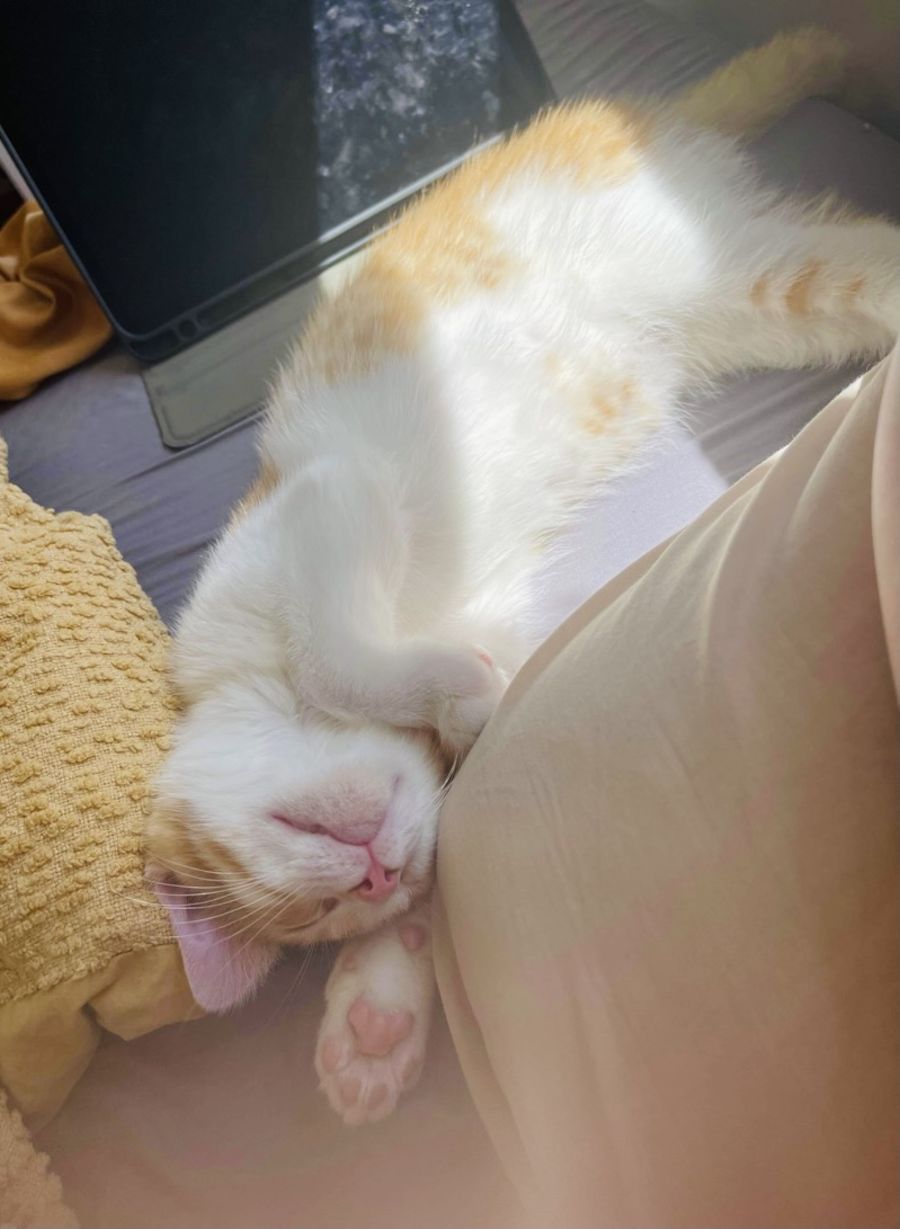 Nacho is a BIG snuggler and will always ask for you to give him plenty of pats from the top of his head to the end of his tail 🐈🤚🏻 This sweet boy is full of energy and loves to climb up high, and run up and down the room playing with his foster siblings and kitten toys 🧶 Nacho loves lounging on the window sill, all cute and stretched out, taking in the warmth of the sun ⛅️ At night time he will always pop himself right next to you to make sure he gets plenty of love and affection 😴 Nacho has the biggest, most sweetest purr of all his foster siblings and will fill the room this beautiful sound.