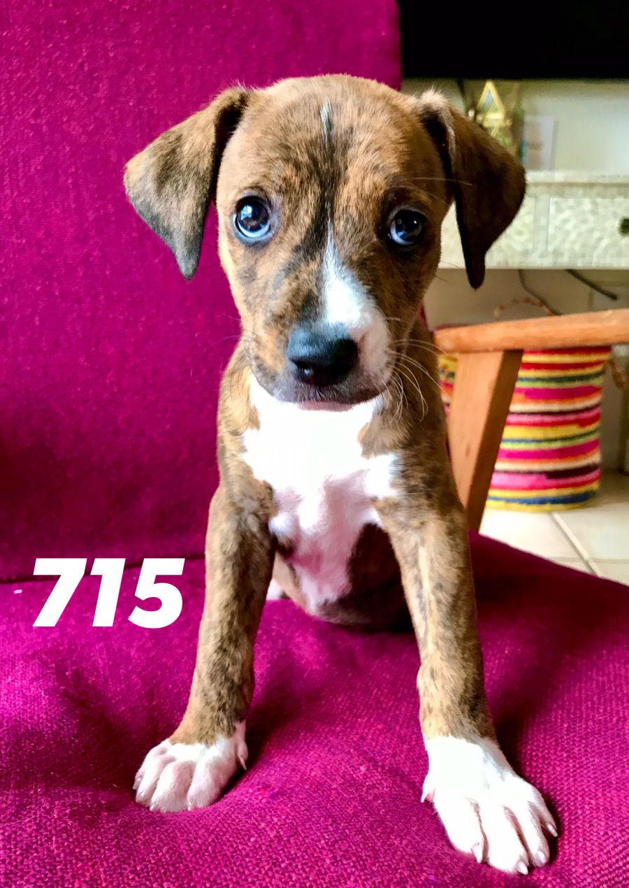 D715 Kia is an intelligent and affectionate mixed breed pup who will thrive with basic training (and lots of cuddles). She requires regular exercise and, when fully grown, will be a medium sized athletic build dog with a short sleek coat.