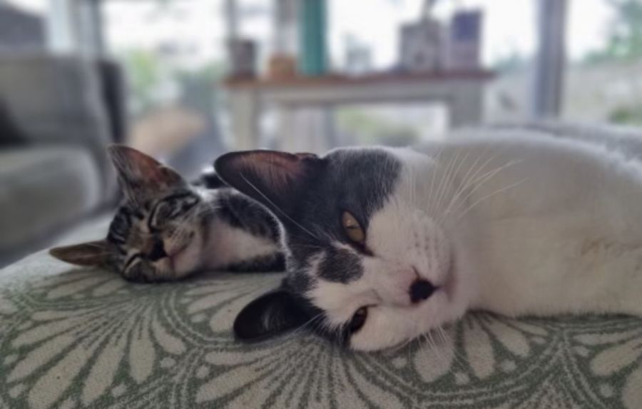 Little Boop is a sweet and playful boy who loves to wrestle with his sister and chew on his foster brother's tail. He's got a healthy appetite and will always be the last one at the food bowl scooping up any leftovers. After a hard play he loves to be stroked to sleep on the arm of the sofa and will reward you with purrs and kitten kisses. He loves cosying up to his foster brother so would do best in a house with a friendly cat chum.